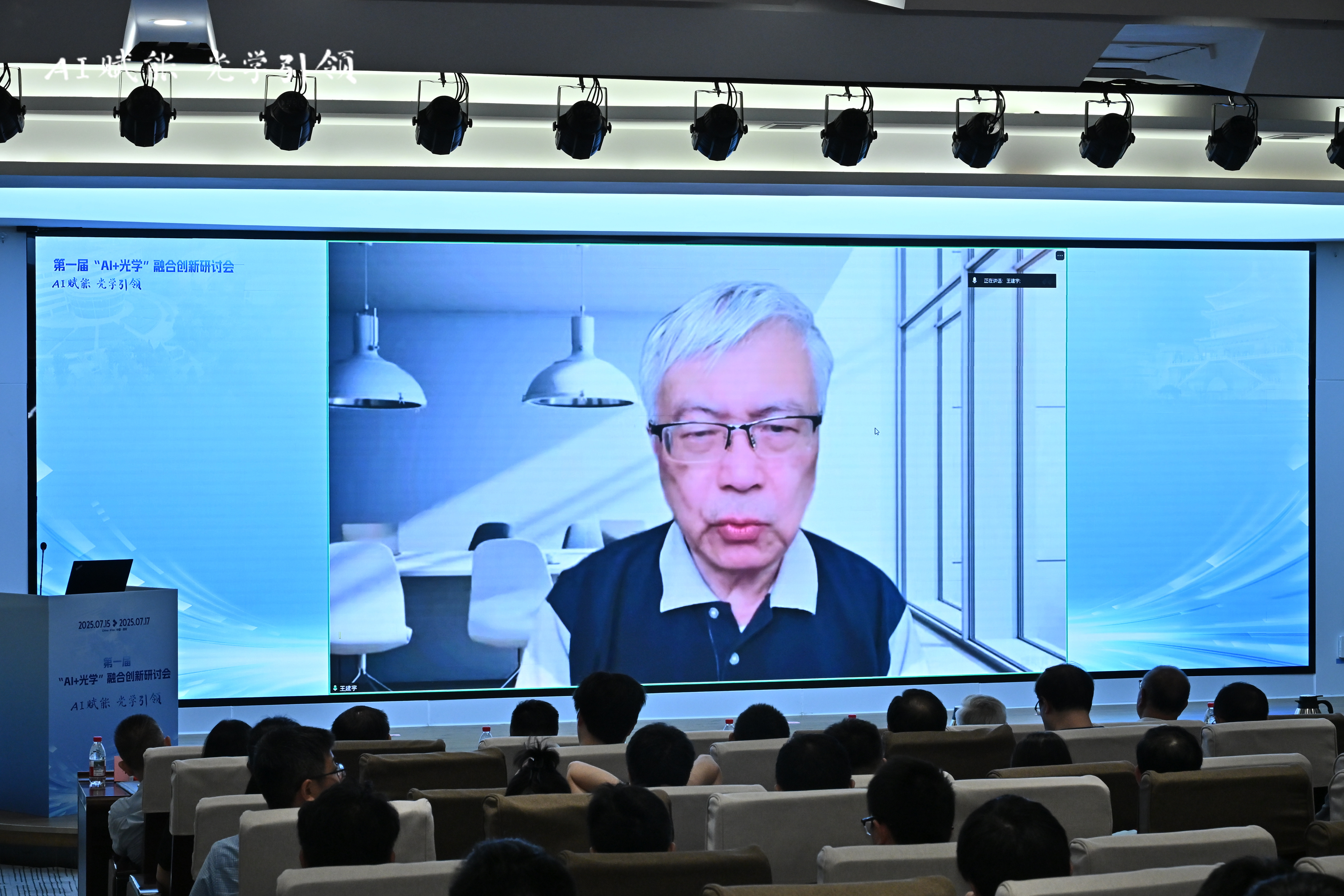 王建宇線上致詞。他表示,“AI for Science”這一革命性范式正深刻重塑科研圖景,本屆大會主題“AI賦能 光學(xué)引領(lǐng)”精準(zhǔn)描繪了當(dāng)今科技前沿最具活力的交叉領(lǐng)域。他指出,“AI for Optics”致力于解決復(fù)雜光學(xué)難題、不斷拓展應(yīng)用邊界,“Optics for AI”則聚焦于構(gòu)建光子AI硬件、突破傳統(tǒng)算力瓶頸,二者的深度結(jié)合不僅是必然趨勢,更是顛覆性創(chuàng)新的沃土。他預(yù)祝本次研討會圓滿成功,期待iOptics茁壯成長,引領(lǐng)全球智能光學(xué)發(fā)展的新浪潮。