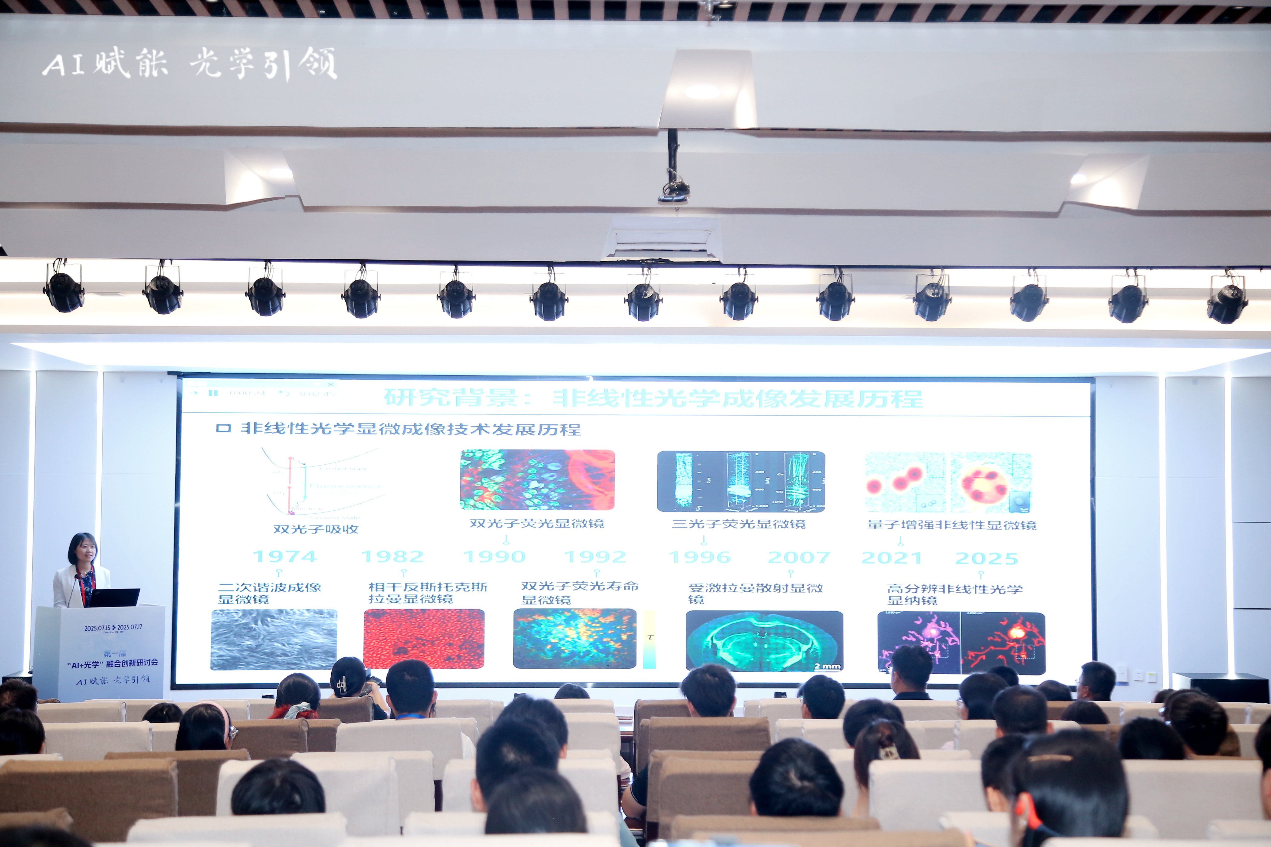 圍繞AI光學成像、AI光電融合、AI光通信等核心議題,深圳大學劉麗煒、清華大學曹良才、中國科學技術大學徐飛虎等六十多位學者在多場并行分會場報告了最新研究進展。會議特別設立研究生創新專場,為青年學者提供分享學術成果的平臺,同濟大學戴江林、浙江大學季超杰等十余位青年學子就研究成果與參會者展開交流。各分會場座無虛席,充分體現了與會者對高質量研究的濃厚興趣。
